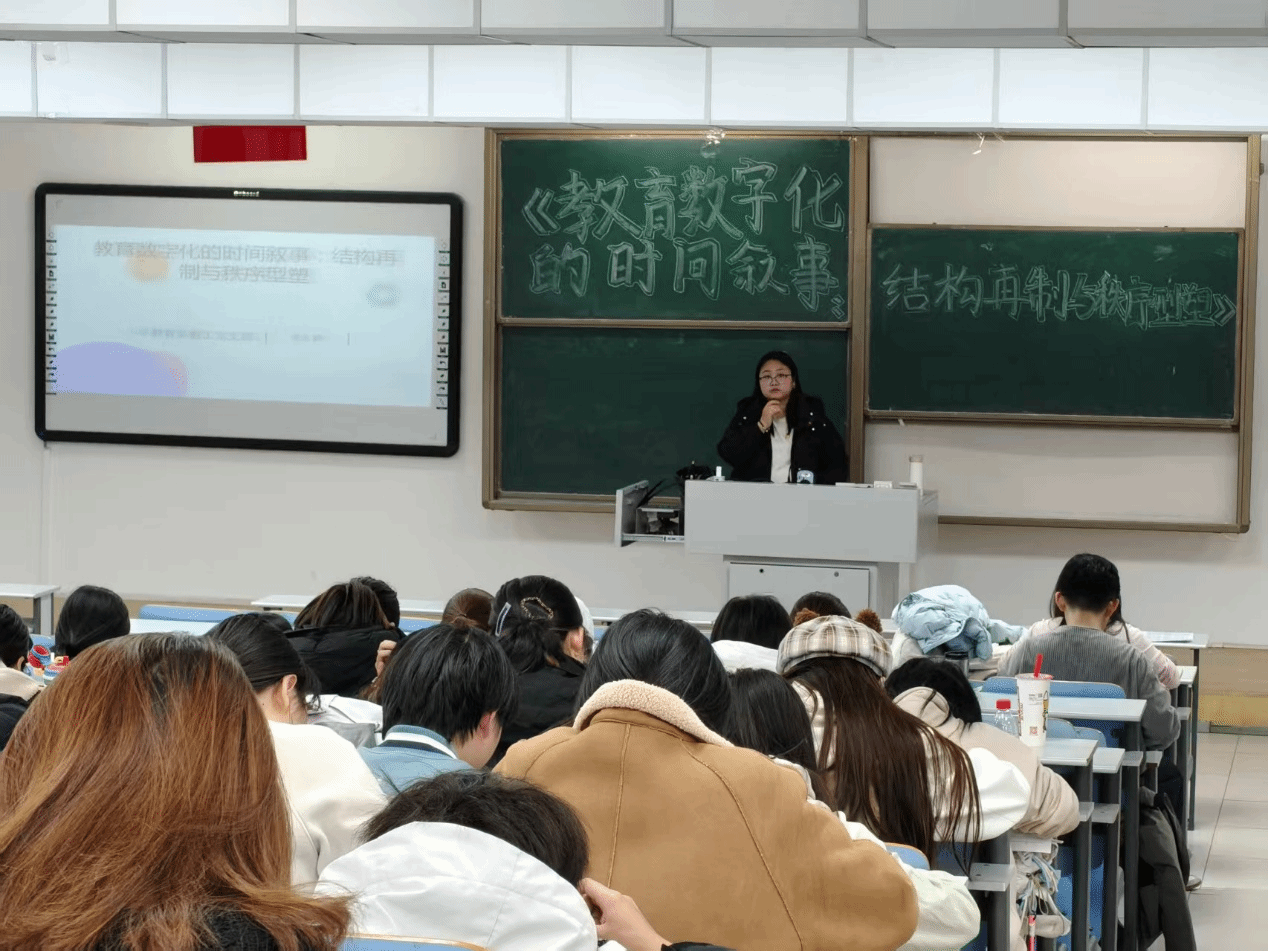 11月6日下午3点,小学教育系教工支部党员姜文静老师以"教育数字化的时间叙事:结构再制与秩序型塑”为题,为小学教育系2023级全体员工、员工第五支部全体党员和入党积极分子做学术报告,共计约200名员工到场听取学术报告。学术报告由员工第五支部党务助理李晓帅同志主持,现场气氛活跃。