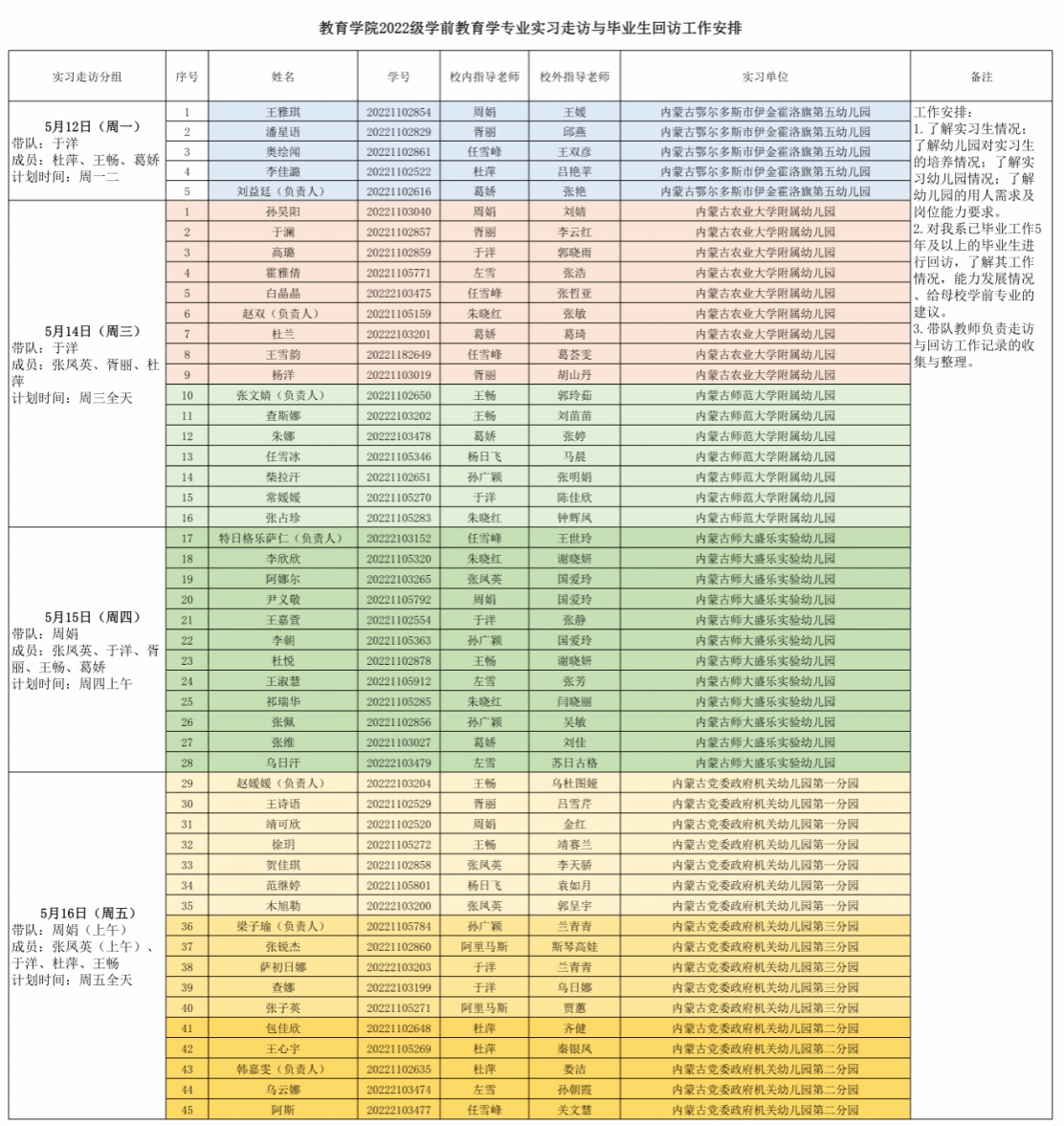 2025年5月11日至5月16日,学前教育系开展了本年度实习生走访与毕业回访工作。参与本次工作的员工队伍主要由中青年构成。