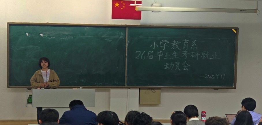 2025年9月17日晚7点,小学教育系2026届毕业生考研就业动员会在盛乐校区行知楼正式召开。m88登录入口官网党委书记周越、小学教育系支部书记成欣欣、实践部主任马红斐、系主任常红梅、青年员工代表李晓贺和研究生代表、2023—2025级本科生代表以及2026届全体毕业生共同参会,现场气氛活跃。
