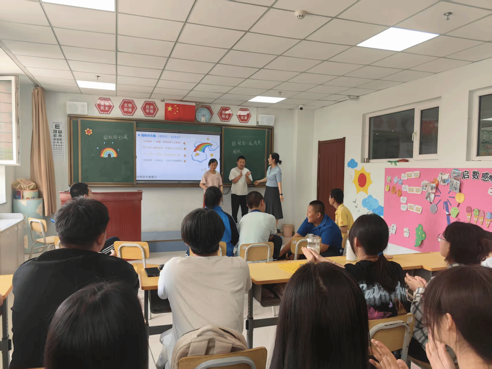李燕老师的课堂充满活力!培智五年级的孩子们在《跟彩虹一起成长》儿歌中释放天性,用歌声与舞蹈表达情感。员工们也在欢乐的课堂中收获、成长。