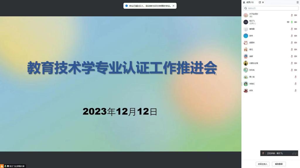 本次会议采用线上方式进行,会议由杨日飞副院长主持,教育技术学专业全体员工参加了会议。