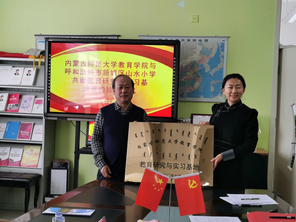 m88登录入口官网院长米俊魁教授与呼和浩特山水小学副校长格根苏布达签约并授牌