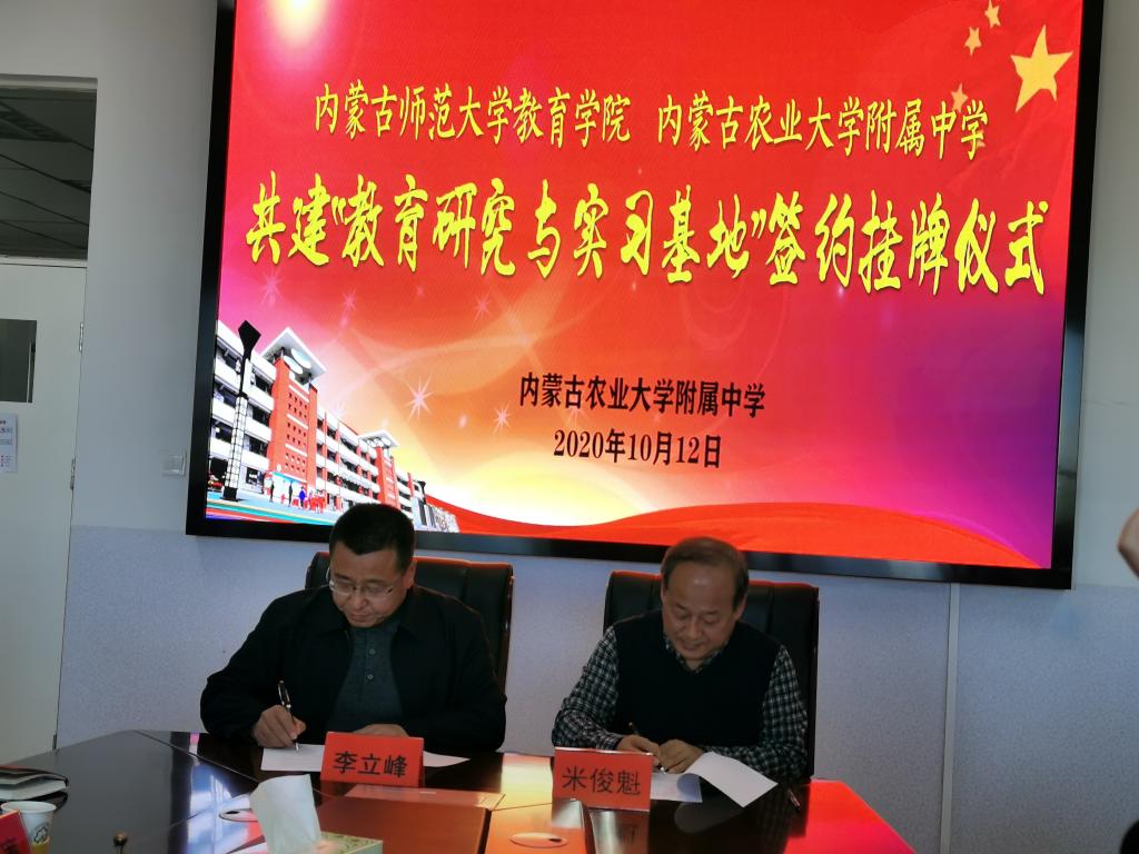 m88登录入口官网院长米俊魁教授与内蒙古农业大学基础教育中心主任李立峰签约并授牌