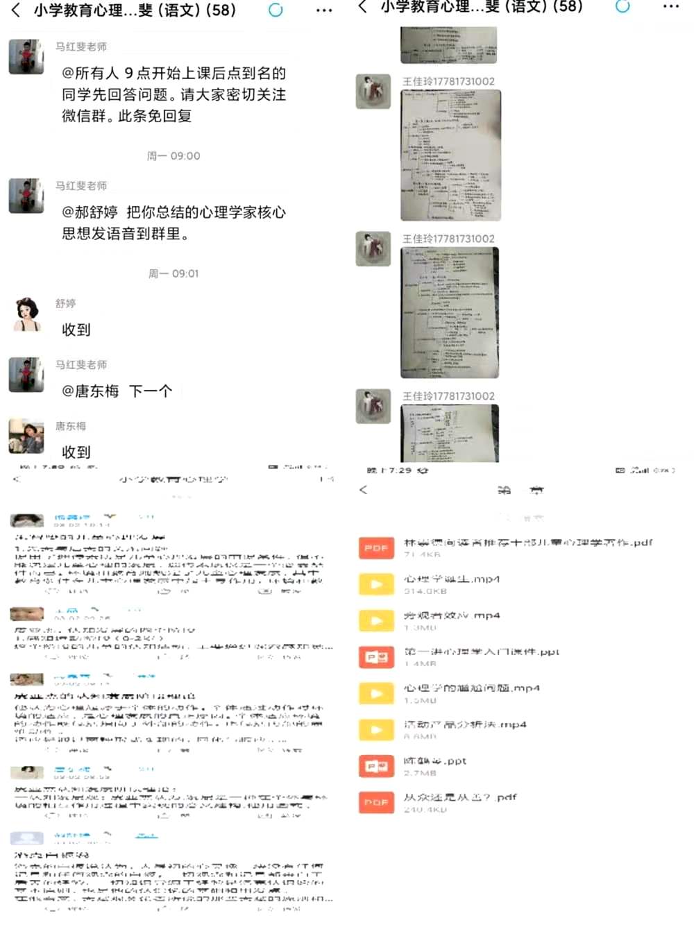 为了更好的实现线上教学,马老师积极推进课堂教学模式改革,主动调整课程设计和教学策略,充分利用信息化网络平台超星学习通,为我们选取合适的课程资源提供完整的课程资料,并利用尔雅平台提问,微信语音问答的方法引导员工主动参与,自主学习,保质保量完成教学任务。从而完美地践行了教学要求不降低,教学环节不减少,教学质量不打折的承诺。