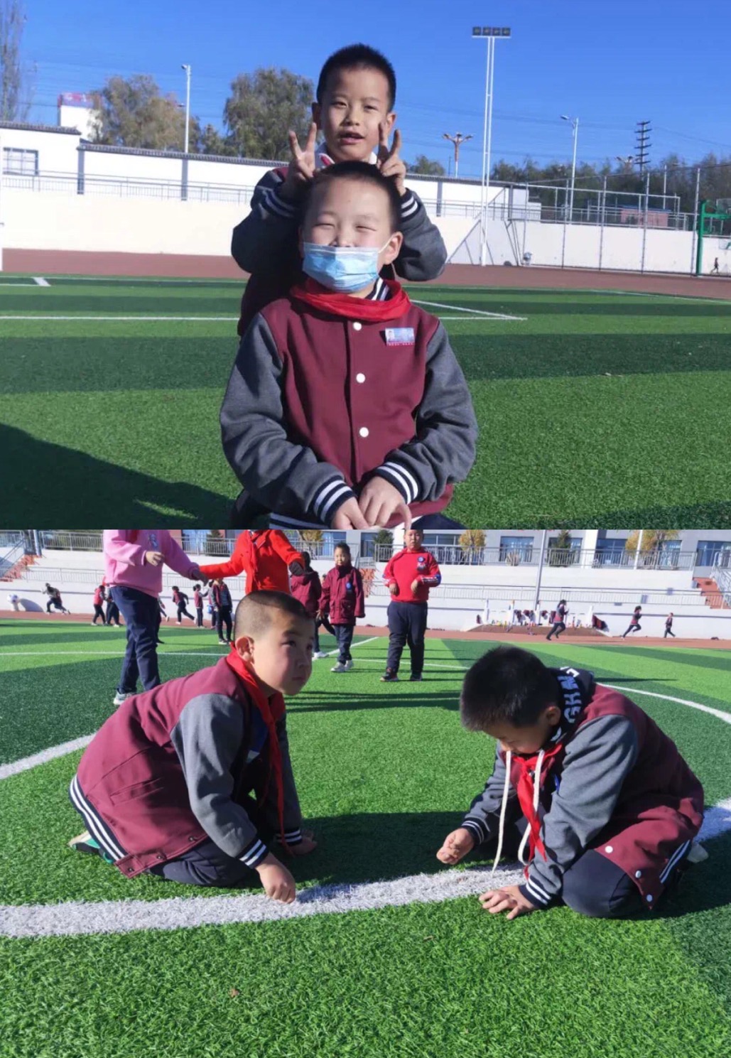 上体育课时,我真的看出了他们的青春朝气、活泼自由,在操场上奔跑嬉闹,在同学身后做鬼脸、两个人观察虫子、一群人追着篮球......他们都非常可爱。