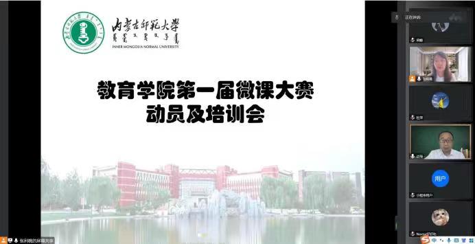 为提升同学们微课设计与开发能力,争取制作出高质量的微课作品,教育技术学系员工支部书记李娜和教育技术学系主任张利桃进行培训课程设计与准备,10月22日上午9:00,在线召开了m88登录入口官网第一届师范生微课大赛动员及培训会,会议由m88登录入口官网副院长边琦教授主持,m88登录入口官网240多位师生通过腾讯会议参加了此次培训。