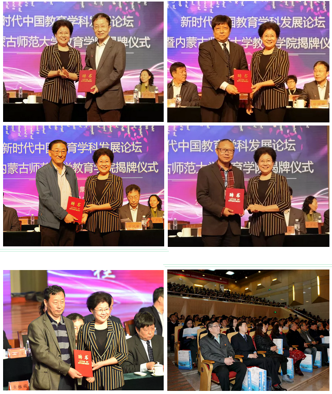 黄雅丽为北京大学m88登录入口官网院长阎凤桥、北京师范大学教育学部副部长李芒、中央民族大学m88登录入口官网党委书记苏德毕力格、北京师范大学博士后发展研究与评估中心主任姚云、海南师范大学教育科学研究院院长李振玉颁发兼职教授聘书。