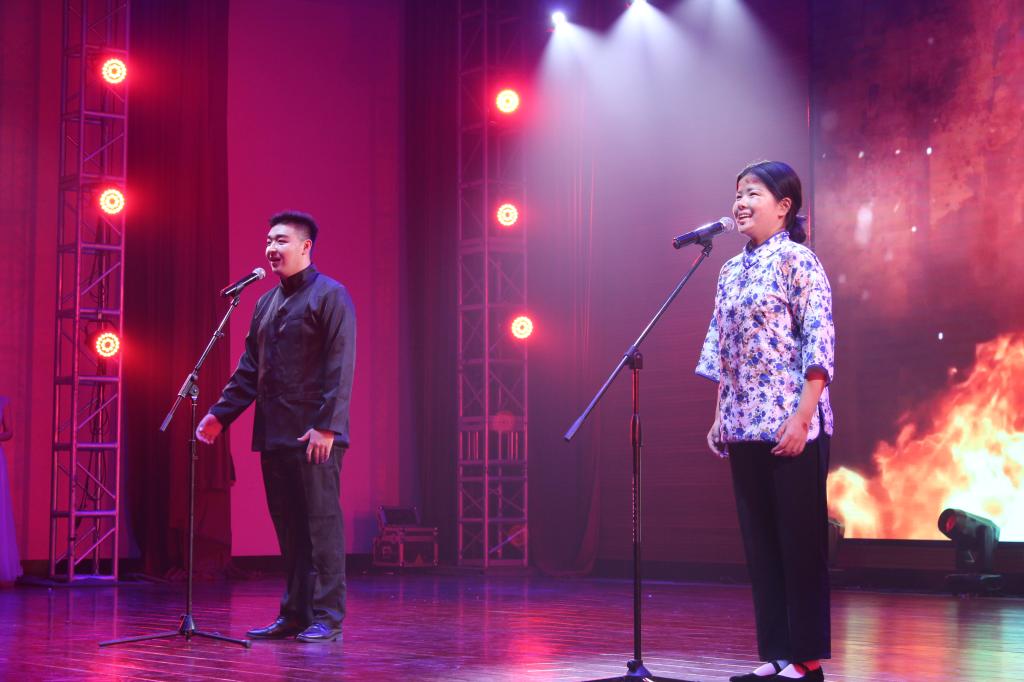 晚会节目精彩纷呈,于洋老师演唱的歌曲《红旗颂》,学前与公管特教党支部全体员工合唱的歌曲《让我们荡起双桨》、《没有共产党就没有新中国》,阿里马斯老师演唱的歌曲《余香》,张健老师演唱的歌曲《玛依拉变奏曲》博得了阵阵掌声,将晚会推向了一个又一个高潮;17、18级同学共同演绎的情景剧《秋瑾》,声行并茂,感人至深;18级、19级同学合唱的歌曲《国家》、《我和我的祖国》,将歌声融入时代旋律,体现了m88登录入口官网学子的家国情怀与赤子之心!