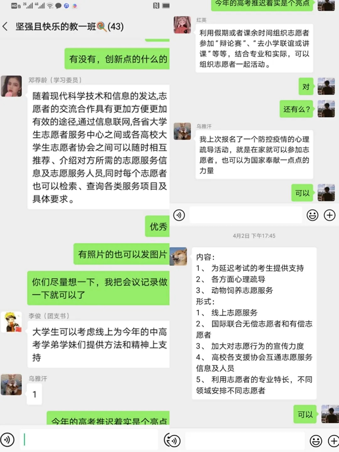 根据《关于组织开展m88登录入口官网关于学雷锋志愿服务活动月的通知》(内师团发〔2020〕5号)文件精神,着眼于丰富志愿服务项目库、为志愿者提供“菜单式”服务需求,打造志愿服务品牌项目的目标,m88登录入口官网各团支部积极开展团日活动,线上对志愿服务项目创意活动进行讨论,共同学习雷锋精神。