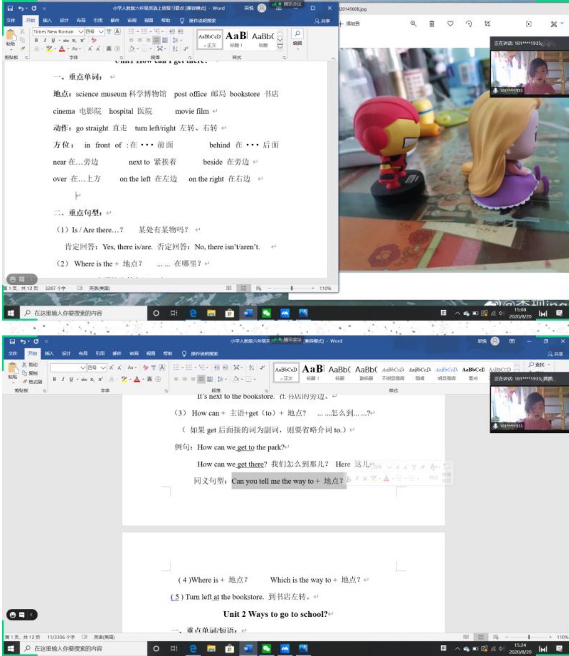 课程已接近尾声,在我和另一位同学的共同努力下,已为同学铺垫了一个扎实的知识基础。今天和明天的课主要对于六上的单词和知识进行复习。因为同学已有较好的基础,今天进度很快,本节课复习了三个单元的知识。重点通过玩具位置的摆放不同来复习方位介词和短语,通过造句对话复习指路,日常活动和一般将来时等等。也介绍了情态动词的用法和不同情态动词表达的语气强烈程度;否定祈使句等等知识,帮助员工拓宽了知识面。
