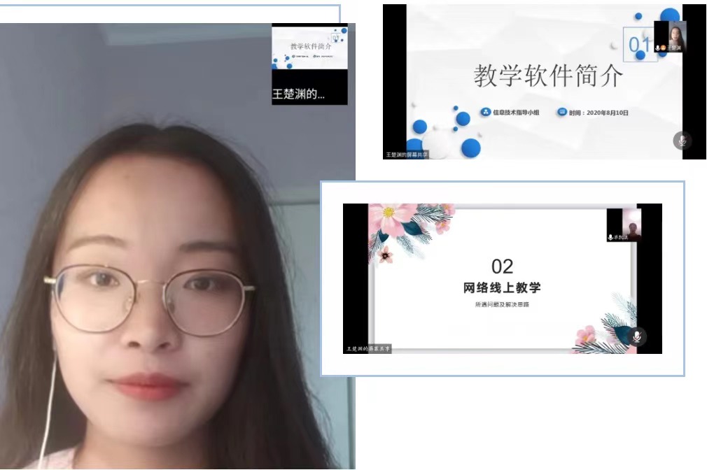此次会议上,我宣讲的主题是网络线上教学所遇问题及解决思路。我将此主题分为六个部分进行讲解,分别是教学文件制作建议、教学视频录制方式、在线教学前准备、直播教学中意外出现中断怎么办、线上教学材料来源、常用软件介绍。细致分析、全面思考,尽心于解决线上问题,为此次云端三下乡做好后勤工作。