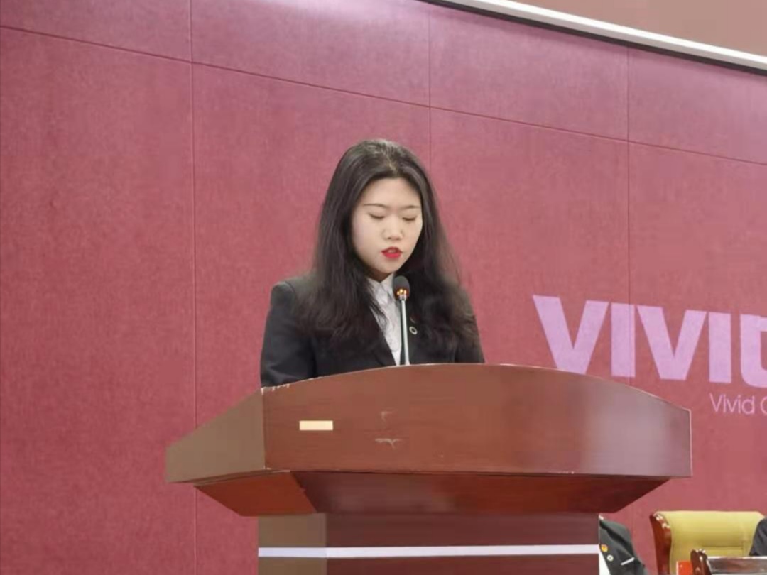 会议第三项议程:校员工会王雨桐代表致贺词。她总结了上届学代会会后的显著成果,对学代会的举办表示肯定。并对本次学代会的召开和各项议程的顺利进行给予期望。