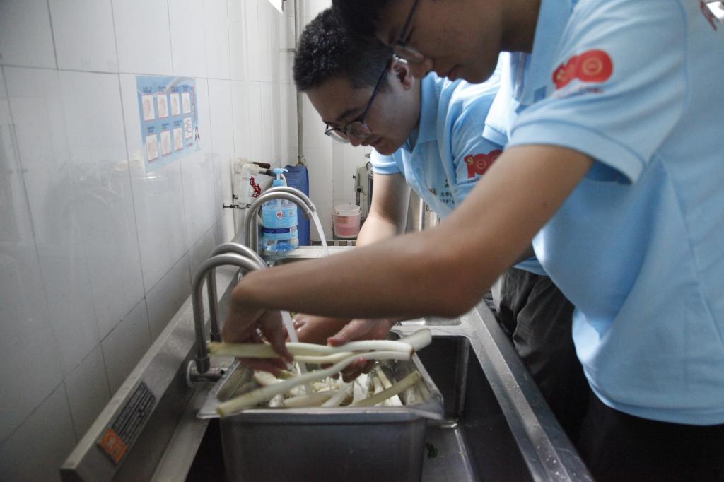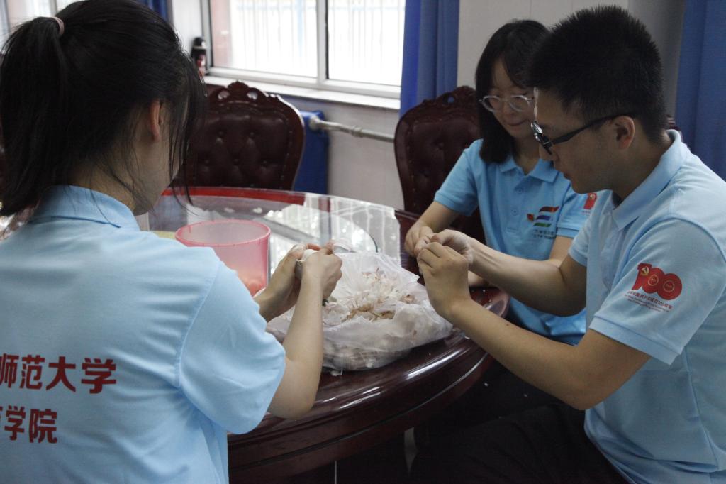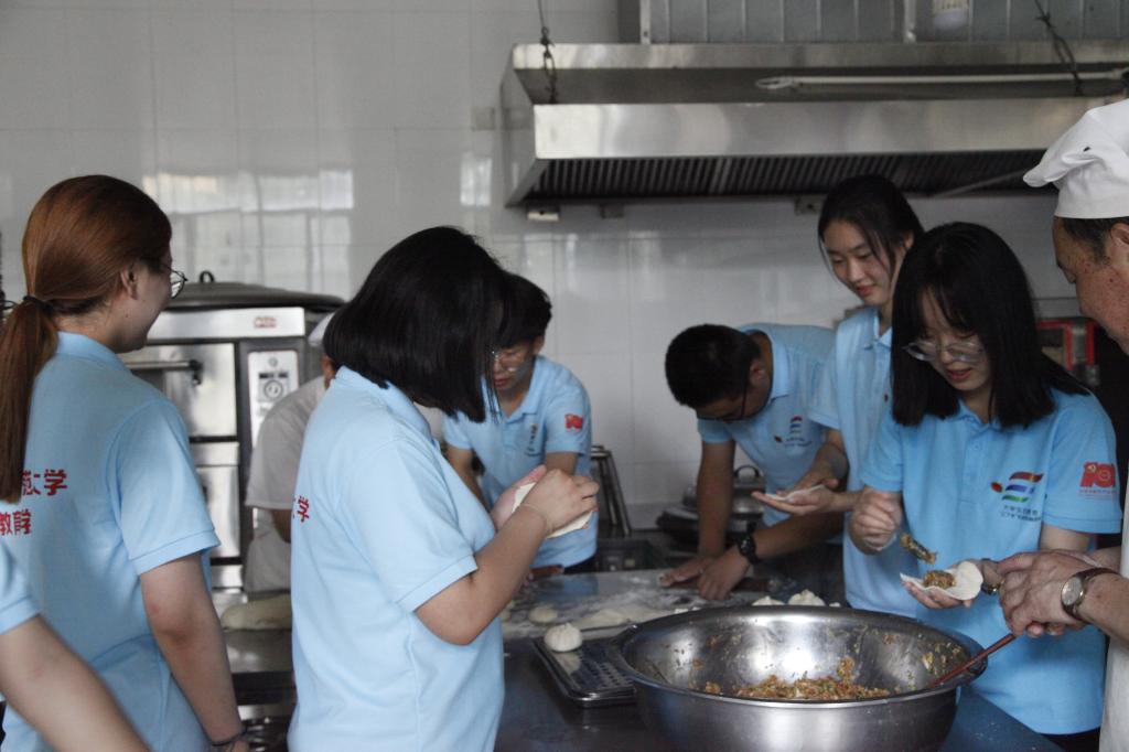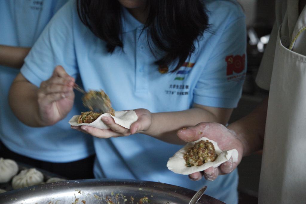 在此次活动中,食堂阿姨提前调制好馅料,手把手传授包包子经验,志愿者们参与热情高昂,不仅锻炼了同学们生活实践的能力,同时也为“三下乡”志愿者服务队营造了一种家的氛围。