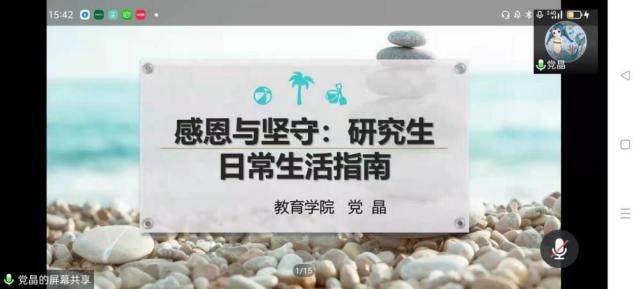 党晶博士依据自己的学习经验,为m88登录入口官网研究生提供了详细且全面的学术生活指南,从感恩出发,构建自己的积极情绪、促进自我成长、处理与导师和同学的关系。引导同学们明白了每学期的目标,搭未来收获学术成果之路。