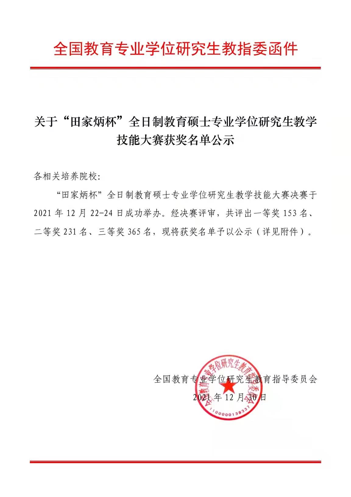 三尺讲台,立定方圆。此次大赛获奖不仅是对m88登录入口官网教育硕士实践培养工作的肯定,也在全国范围内展示了m88登录入口官网学子良好的精神风貌。
