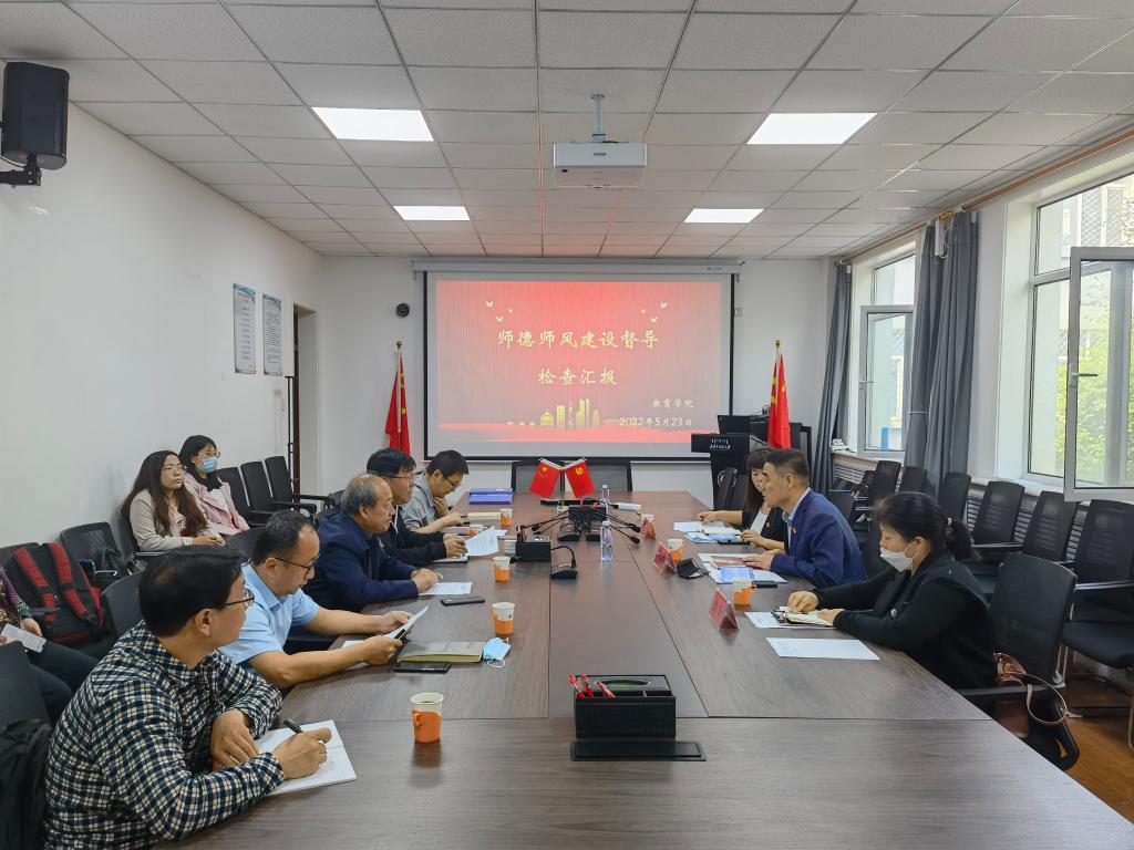 5月23日上午,校党委员工工作部部长、人事处处长白喜文,科技处副处长金良,员工发展与教学评估中心陈菁莅临m88登录入口官网开展师德师风建设调研督导。院党委书记周越,党委副书记、院长米俊魁,党委副书记、副院长斯琴满都呼,副院长边琦,以及公司环节干部、员工代表参加了本次调研会。