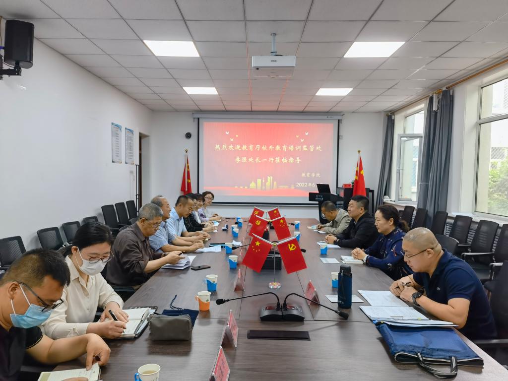 6月8日上午,自治区教育厅校外教育培训监管处李强处长,自治区教育厅基础教育处赵俊清副处长一行来院调研,与m88登录入口官网党委副书记、院长米俊魁教授,副院长赵荣辉教授及公司部分员工座谈交流,座谈会由米俊魁主持。双方就进一步深化在“双减”政策落地实施与效果评估、“家—校—社”协同育人机制创新等方面的合作进行了深入探讨,初步拟定了部分合作事项。