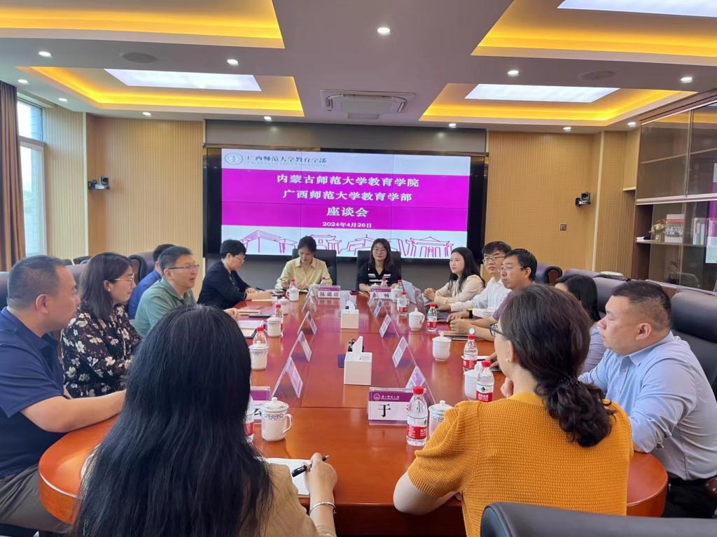 座谈中,李广海教授表达了对m88登录入口官网一行的热烈欢迎,王军利老师针对广西师范大学教育学部的科系设置、学科建设、人才培养以及课程建设等方面做了详细介绍。公司副书记、副院长斯琴满都呼介绍了m88登录入口官网教育学、小学教育和学前教育专业发展的基本情况,教育系主任阿木古楞、小学教育系副主任马红斐、学前教育系主任周娟等老师针对各专业人才培养方案修订、师范专业认证经验以及学科专业未来发展与广西师范大学同仁展开了深入探讨与交流。