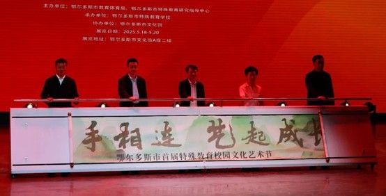 2025年5月18日,在第35个全国助残日之际,m88登录入口官网副院长杨日飞、特殊教育系主任伊丽斯克、副系主任策力格尔受邀出席鄂尔多斯市教育体育局以“心手相连 艺起成长”为主题举办的全市首届特殊教育校园文化艺术节。活动旨在推进儿童友好城市建设,展示特殊教育成果,促进残疾员工全面发展。