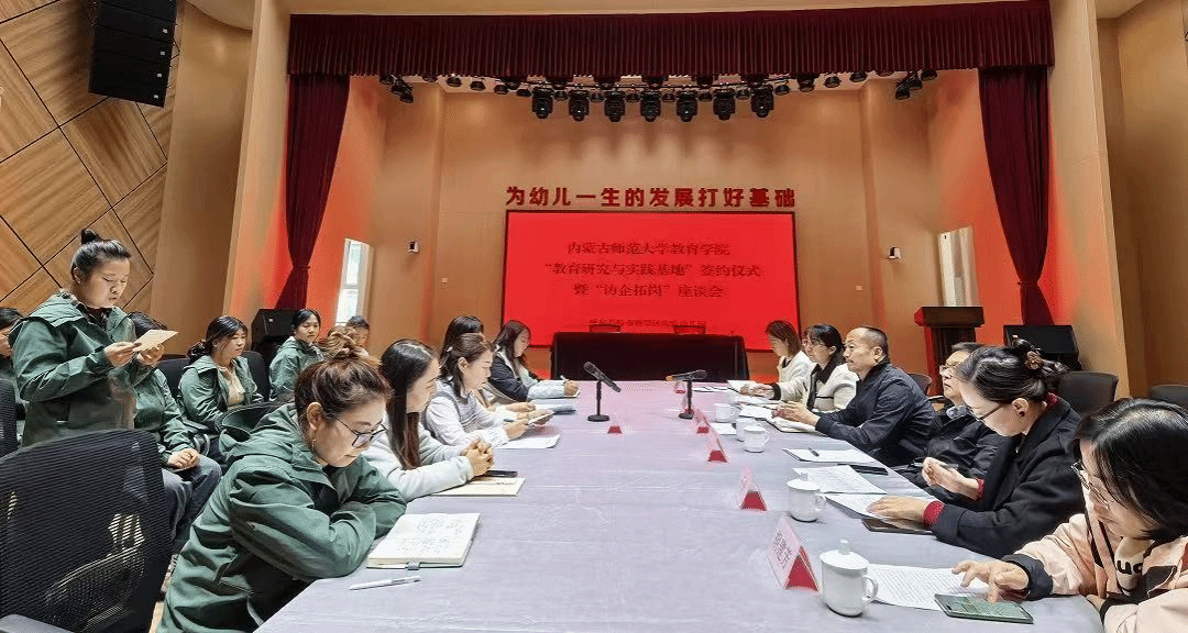 本次座谈会旨在打通高校人才培养与一线用人单位需求之间的通道,构建“培养—输送—成长”一体化育人机制。会上,赵荣辉院长围绕m88登录入口官网学科建设、人才培养特色以及学前教育专业优势等进行了重点介绍,斯琴满都呼书记详细介绍了学前教育专业2025届毕业生的就业情况以及2026届毕业生的岗位需求,陈娜仁园长就该园的办园理念、课程特色以及公司团队建设情况作了分享。双方围绕学前教育师资需求与岗位标准、人才培养方案优化、实习实训体系构建等议题进行了深入交流,明确了下一步合作的具体推进计划。