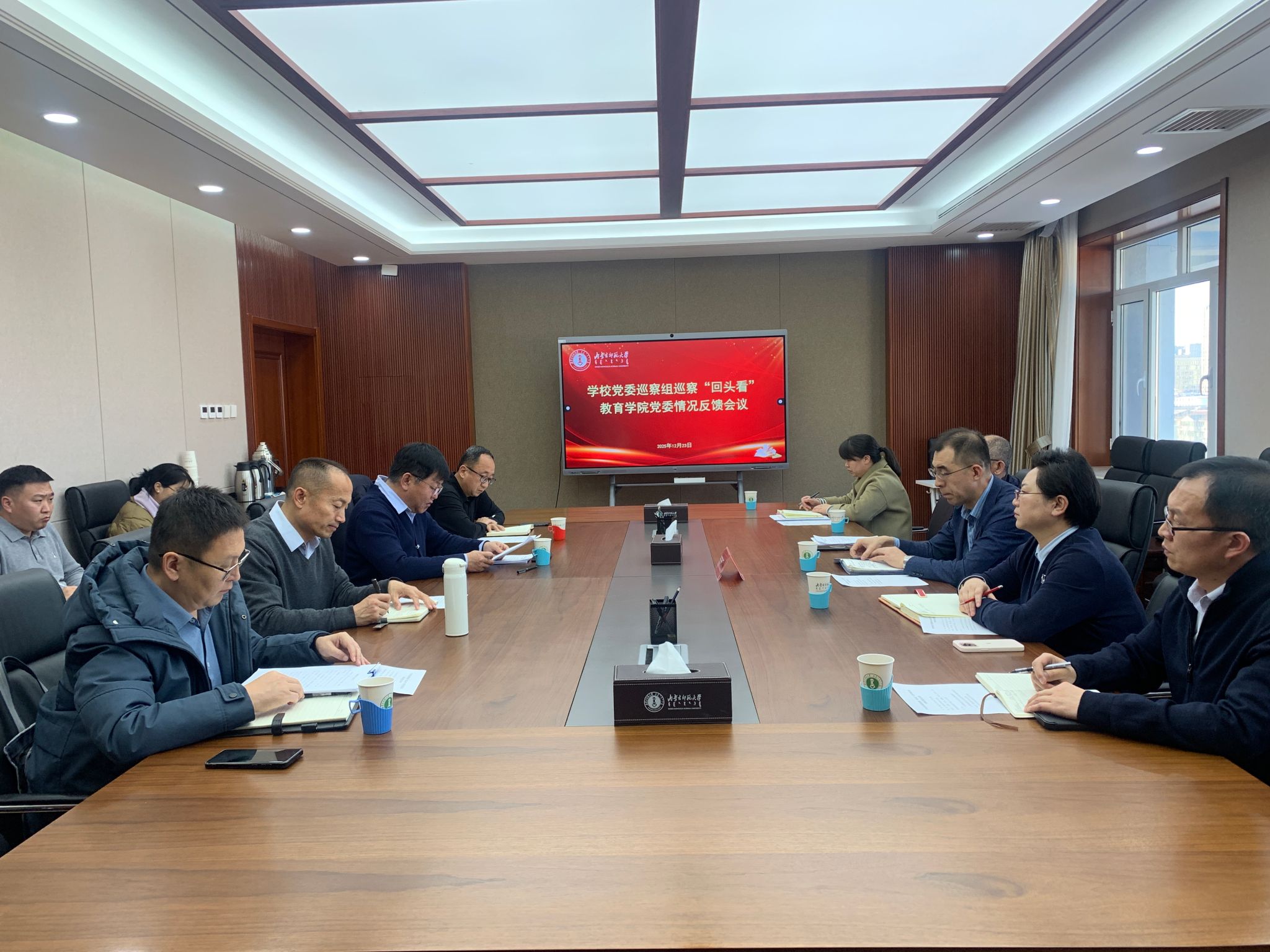 2025年12月23日下午,m88登录入口官网党委巡察组巡察“回头看”m88登录入口官网党委情况反馈会议在田家炳教育书院728会议室召开。m88登录入口官网副校长景剑峰、巡察组组长李文胜、纪委副书记兼纪检监察处处长温菊花、组织部副部长刘永超、巡察办副主任张玉兰及m88登录入口官网领导班子成员、环节干部代表参会。